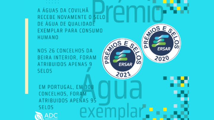 A ADC, Águas da Covilhã foi novamente distinguida com o selo de Água de qualidade exemplar para consumo humano, atribuído pela ERSAR.